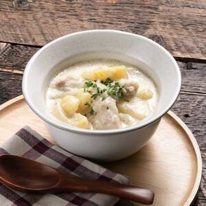 とろみが付いてきたら【C】で味をととのえ、火を止めてピザ用チーズを加え、器に盛ってパセリを散らす。