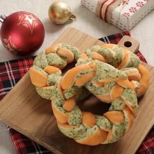 縦長に置いて、2本筋を入れ、3つ編みにしてリースにする。