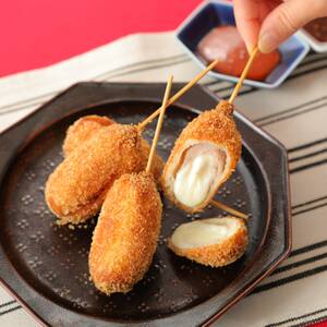 【ポイント2】 油の温度が高いと中のチーズがとろっとならないため、低音でゆっくり揚げてください。