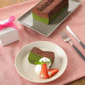 <8>がもったりとしてきたら<7>の抹茶チョコレートに加え混ぜ、型に生地を流し込む。