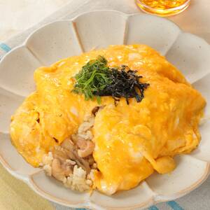 卵がお好みの半熟具合になったら、盛り付けたご飯に卵をスライドさせてのせる。