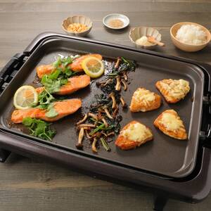 鉄板を200℃に温める。メカジキの余分な水気をキッチンペーパーで拭き取り、薄力粉をまぶして余分な粉を落とす。
