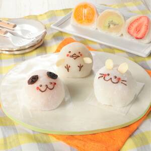 <9>で包むときに、求肥の中央が薄くならないように、端を伸ばしながら包むと、きれいに仕上がる。