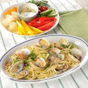 あさりの口が開いたら、<2>のスパゲッティを加えて和える。