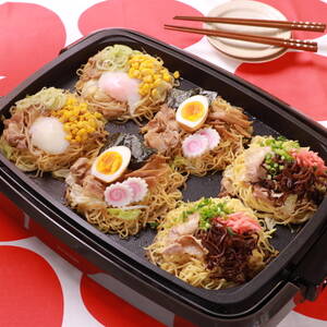 2つに分けて、それぞれトッピング用の具材を盛り付ける。