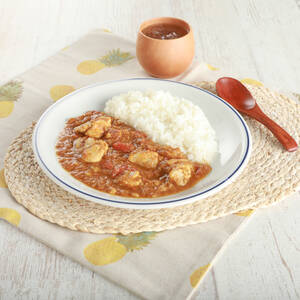 玉ねぎは、繊維に直角に薄切りにする。パイナップルは、粗めのみじん切りにする。