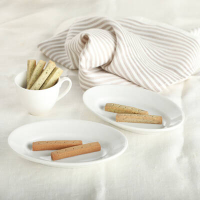 生地を包丁で7cm×1cmに切る。クッキーに楊枝の柄で5箇所点をつける。