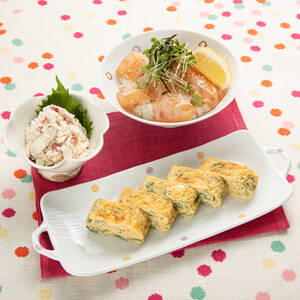 卵焼き器にサラダ油をよくなじませ、中火で加熱する。しっかりと温まったら、<2>を1/3量を入れ、全体に広げる。