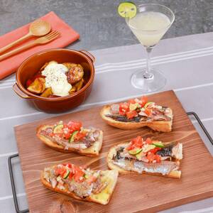 バケットに<10>をのせ、粗びき黒こしょうをふる。<8>をのせ、お好みで、オリーブオイルをまわしかける。