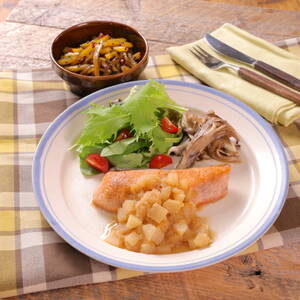 フライパンにバターを入れ、中火で加熱する。バターが溶けたら水を切ったさつまいもを入れ炒める。