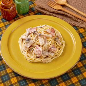 <6>に<7>を入れ、ソースをからませて器に盛る。お好みで粗びき黒こしょうをかける。