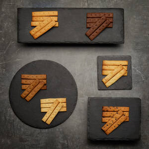 生地を5mmの厚さに伸ばし、1cm×7cmに切る。竹串で3箇所穴を開ける。