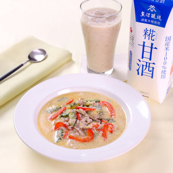 豚ひき肉と夏野菜の糀甘酒エスニックスープ