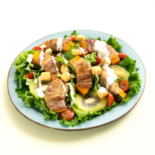 かぼちゃ肉巻きのカラフルシーザーサラダ
