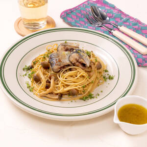 さんまを端に寄せ、しめじ、エリンギを加えてしんなりするまで炒める。