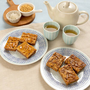 バットごとケーキクーラーの上で冷まし粗熱を取る。ヌガーの面を下にして切り分ける。