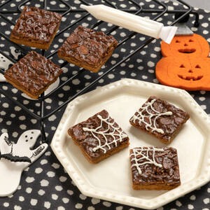 【仕上げ】 ホワイトチョコペンで蜘蛛の巣を描く。