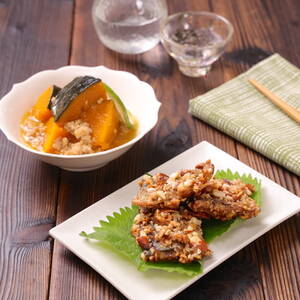 落し蓋を外し、竹串などでかぼちゃの火の入り具合を確かめる。火を弱めて水溶き片栗粉を加え、中火に戻してとろみをつける。
