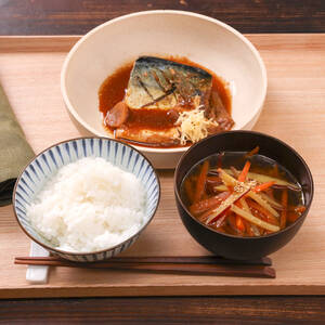 水、和風だしを加えてひと煮立ちさせ、味噌を溶かして混ぜる。器に盛り付け白ごまを散らす。