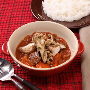 フライパンを強火で熱し、しいたけとまいたけを焼き付けるように炒める。一回り小さくなったら塩少々(分量外)をし、取り出す。