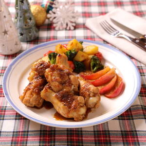 手羽元をポリ袋に入れてすりおろしたりんごを加えよく揉み込み10分程寝かせる。
