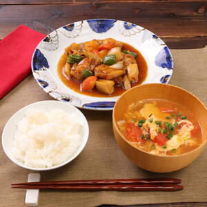 <3>に<5>とみかんの絞り汁を加えて中火にかけ、全体にたれを絡めながらひと煮たちさせ、器に盛り付ける。