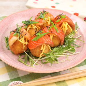 ボウルに【B】を混ぜ合わせて電子レンジ(600W)で2分加熱する。粗熱が取れたらサーモンとえびを漬けておく。