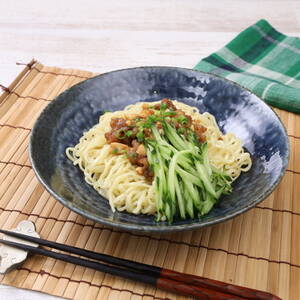 鍋にお湯を沸かし、中華麺を茹でる。ザルなどで水気を切って水で締め、ごま油を絡める。