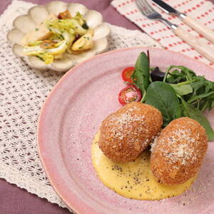 塩こしょうで味を調える。パセリのみじん切りを加えさっと混ぜ合わせ、器に盛り付ける。