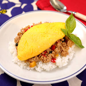 【B】の卵をボウルに割り入れよく混ぜ合わせる。他の調味料も入れて再度よく混ぜ合わせる。