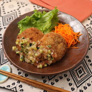 170度に熱したサラダ油で4~5分ほどキツネ色になるまで揚げ、中まで火を通す。