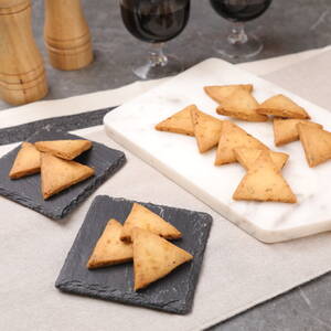 5mmの厚さに伸ばし5cmの三角形に切る。170℃に予熱したオーブンで17〜20分焼く。