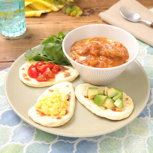 器に<9>をのせて<13>を3枚ずつ並べる。【トッピング】を好きなようにのせ、お好みでパクチーやお好きな葉野菜を添える。