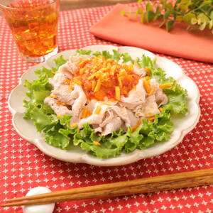 鍋に湯を沸かし【A】を入れ、再度沸騰させる。極弱火にし、豚肉を広げ入れ、肉の色が変わったら、ザルに上げて粗熱をとる。