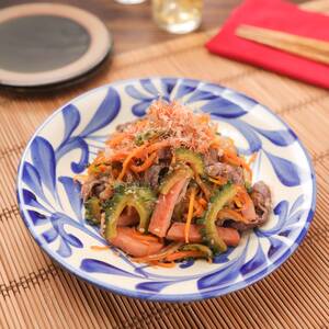 残りのごま油を熱し玉ねぎを炒める。しんなりしてきたらゴーヤとにんじんを加えてさっと炒める。