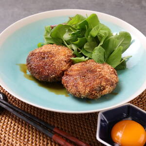 ボウルに【C】を混ぜ合わせ、<4>をくぐらせてパン粉を付ける。中〜高温に熱した揚げ油でからっときつね色になるまで揚げる。