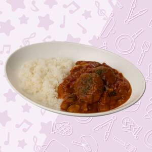 とろみが付いたらハンバーグを加えて2~3分ほど煮込む。器にごはん、カレーを盛り付けパセリを散らす。