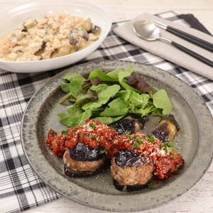 フライパンにオリーブオイル大さじ1を熱し、なすが柔らかくなるまで炒め、一旦取り出す。