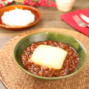 バターがなじんだらハンバーグの上にスライスチーズをのせる。蓋をしてチーズがとけたら火を止め、器に盛りつける。