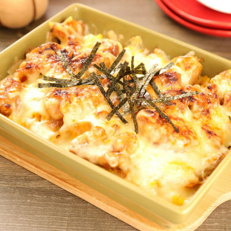 耐熱皿に<3>を入れて<8>をのせる。軽くなじませ、ピザ用チーズをのせる。
