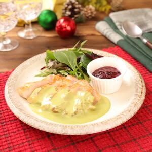 <6>に<8>をかける。<10>を添え、お好きな野菜を盛りつける。※お好みで<10>をかけてお召し上がり下さい。