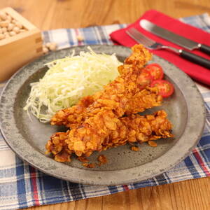 【B】をボウルに混ぜ合わせる。<3>をくぐらせ、コーンフレークを全体にしっかりまぶす。