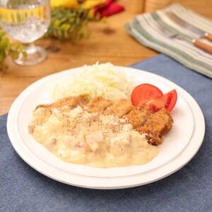 <11>に<5>をかけ、粉チーズと粗びき黒こしょうをふる。お好みでキャベツやトマトを添える。