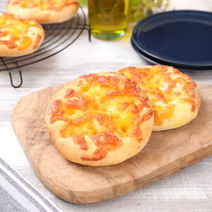 200℃に予熱したオーブンで12〜14分程焼く。お好みでオリーブオイルをつけてお召し上がり下さい。