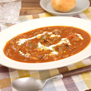 トマトは1cmの角切りにする。玉ねぎは薄切りにする。しめじは石づきを除いてほぐす。にんにくはみじん切りにする。