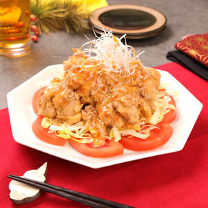 鶏肉は余分な脂肪や筋を取り除き、食べやすい大きさに切る。ビニール袋に入れて砂糖と酒をよくなじませる。