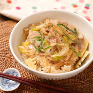 炊飯釜にお米、【A】、水を目盛りまで注ぎ、たけのこを加えて炊く。
