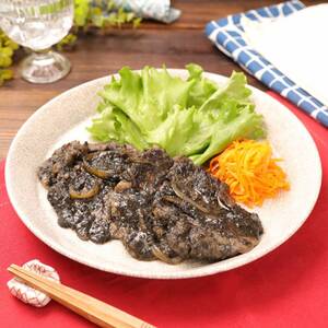 両面に火が入ったら玉ねぎと混ぜ合わせる。<2>の残ったつけ汁に黒すりごまを入れて混ぜ合わせ、回しかける。