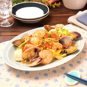 ※あさりやシーフードミックスによって塩味や水分量が変わりますので、調味料で調節して下さい。