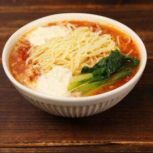 小鍋にごま油をひいて中火で熱し、豚肉を炒めて塩少々(分量外)する。しっかり焼き色をつけたら豆板醤を加えて炒め合わせる。